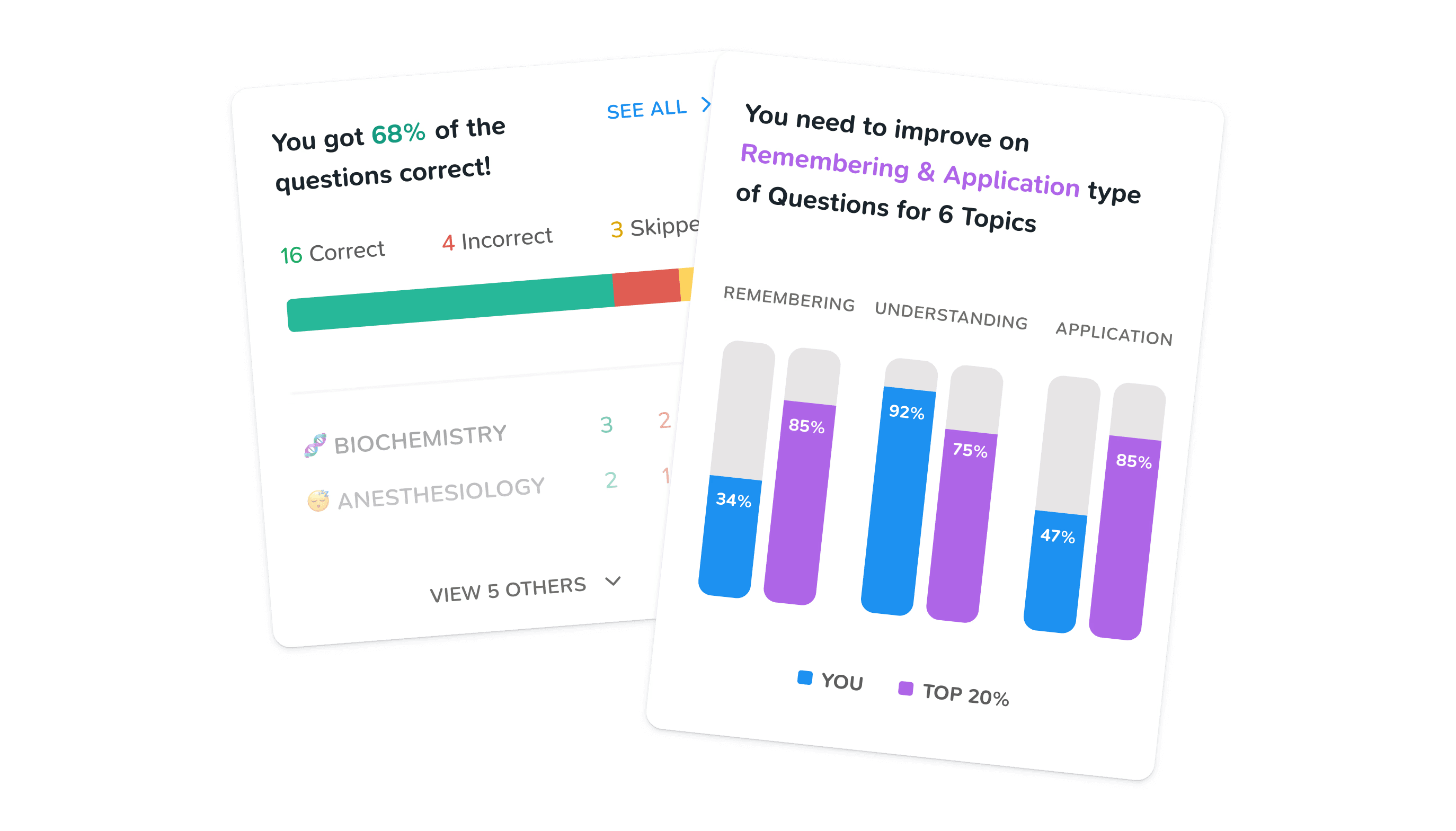 More than just a score. Oncourse breaks down your performance across Memory, Concepts, and Application. See where you stand, identify your weak areas, and know exactly what to work on next.