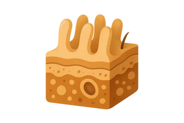 - The **vaginal epithelium** is composed of several layers of flattened, nucleated cells that provide **protection against friction** and resist pathogen entry during intercourse and childbirth [1].