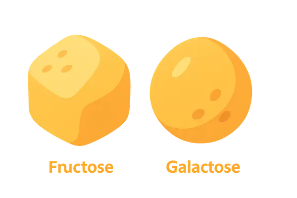 - This is the hydrolysis product of **lactose**, a disaccharide broken down by the enzyme **lactase**.