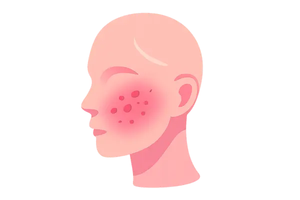- In rosacea, erythema is often persistent and central facial, while in **acne vulgaris** it can surround inflamed lesions.