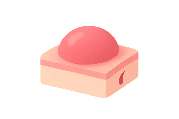 - This is an **aggressive form** that grows vertically from the start, presenting as a **dark, raised, often ulcerated nodule** and typically has a shorter history of rapid growth.