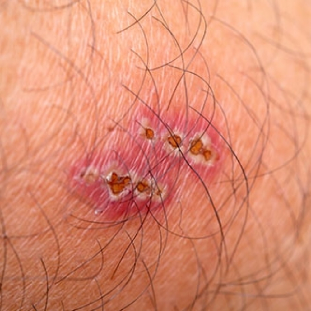 - D. Excoriated nodules on scrotum