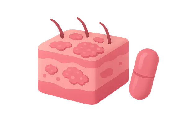 - It likely affects keratinocyte proliferation and immune responses in the skin.