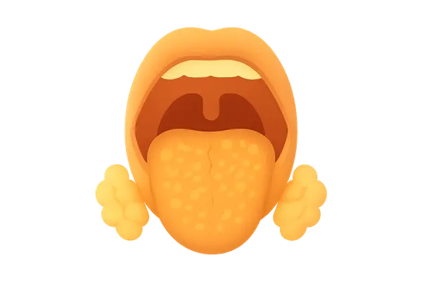 - While it can cause speech or swallowing difficulties, its location is distinct from the mass seen at the tongue base.