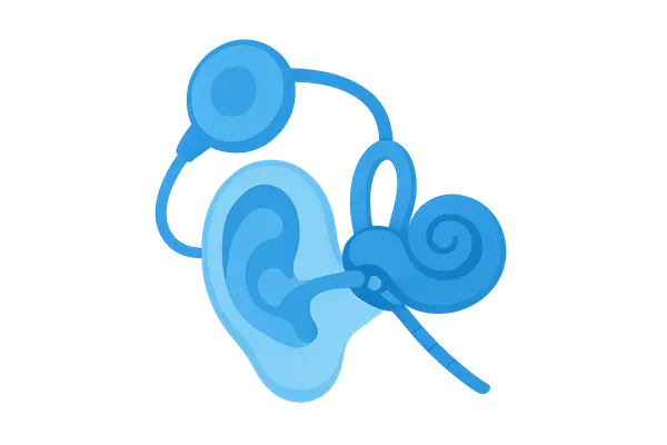 - It does not involve ear-worn components or internal surgical implants of the type seen in the image.