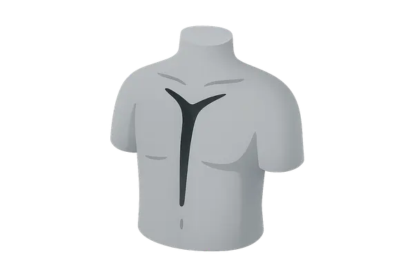 - The **'T' shaped incision** is another recognized incision, though less common than the 'Y' shape, primarily used for better exposure of the neck and chest in certain circumstances.