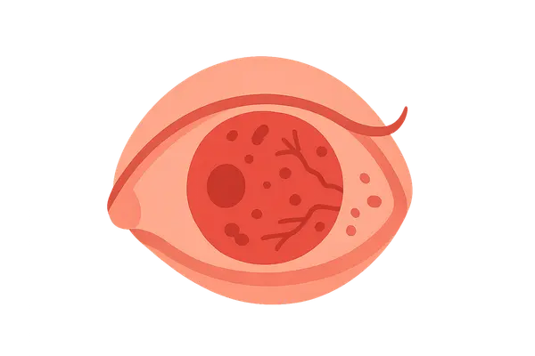 - Ischemia in the retina triggers the growth of **new blood vessels** on the iris and in the angle of the eye, obstructing aqueous outflow and raising intraocular pressure.