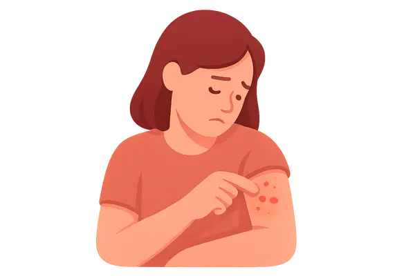 - This would typically present with localized **urticarial papules** or **vesicles** at discrete bite sites, not a diffuse chronic condition lasting 3 years.
