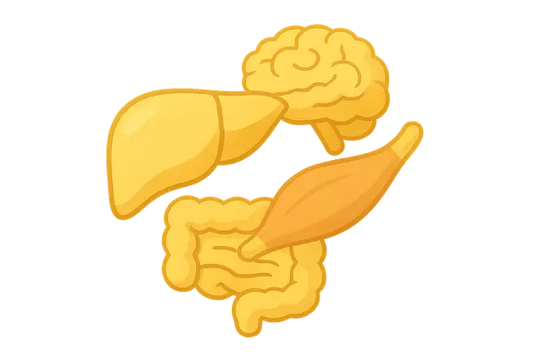 - Deficiency in **lysosomal α-1,4-glucosidase** (Type II glycogen storage disease, Pompe disease) primarily affects the **heart, muscle, and liver**, causing severe **cardiomyopathy**, hypotonia, and **hepatomegaly**.
