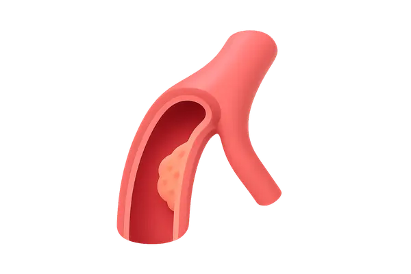 - While it can lead to **artery hardening**, it typically does not obstruct blood flow or cause angina, and is more common in **elderly** and **diabetic** individuals.