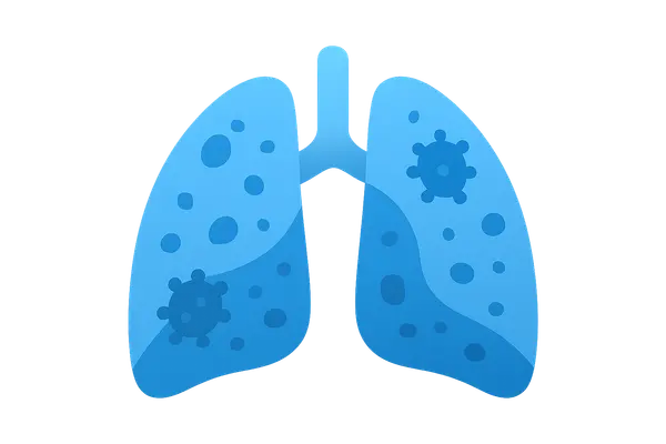 Pneumonia (community-acquired, hospital-acquired) US Medical PG Question 4: A 43-year-old woman comes to the physician because of a fever, nausea, and a nonproductive cough for 7 days. During this period, she has had headaches, generalized fatigue, and muscle and joint pain. She has also had increasing shortness of breath for 2 days. She has type 2 diabetes mellitus and osteoarthritis of her left knee. Current medications include insulin and ibuprofen. She had smoked two packs of cigarettes daily for 20 years but stopped 10 years ago. Her temperature is 38.1°C (100.6°F), pulse is 94/min, respirations are 18/min, and blood pressure is 132/86 mm Hg. The lungs are clear to auscultation. There are multiple skin lesions with a blue livid center, pale intermediate zone, and a dark red peripheral rim on the upper and lower extremities. Laboratory studies show: