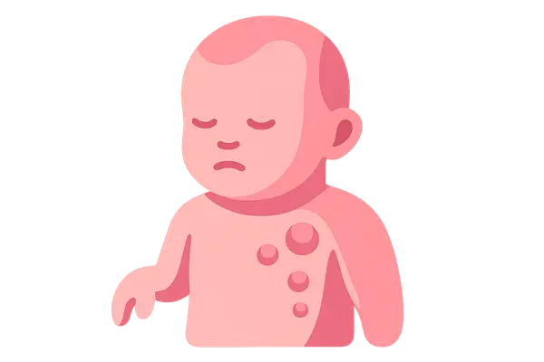 - The infant's description of being "in no apparent distress" and exhibiting chronic signs like lethargy and hypothermia makes an acute allergic reaction unlikely.