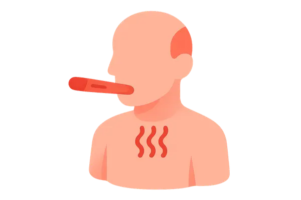 - This patient's symptoms are fever and chills, not allergic manifestations.