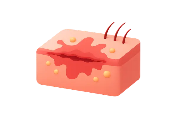 - These do not account for the **erythema and discharge from the incision sites**.