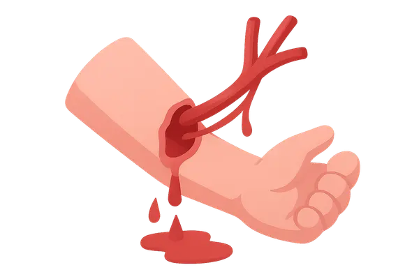 - Applying a tourniquet could cause **ischemic damage** to the extremity if applied for too long, and for a deep stab wound, direct compression is often effective until surgical control can be achieved.