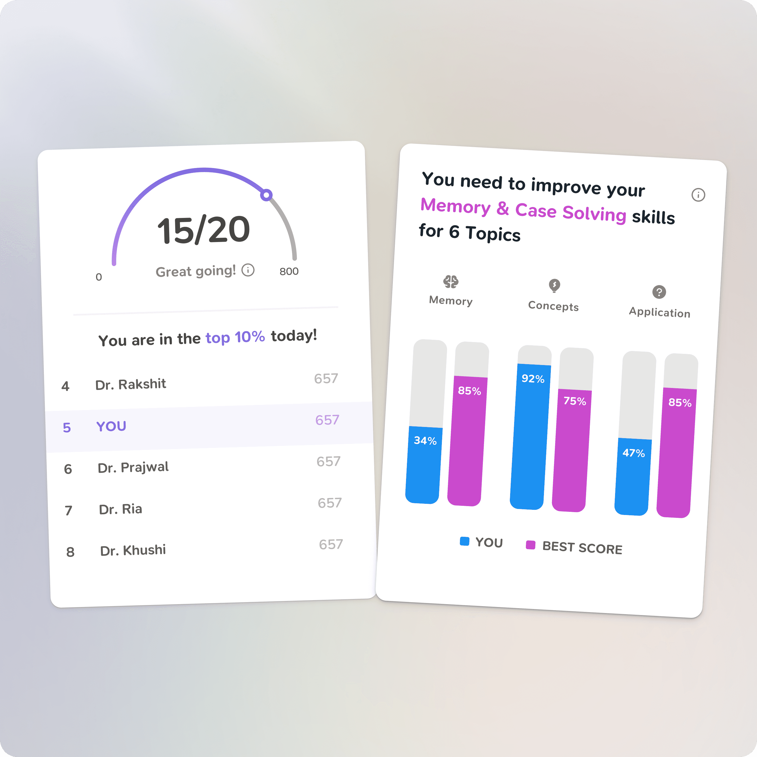 Spaced repetition, active recall, and pattern recognition—backed by cognitive science and built into every feature so you retain more and forget less.